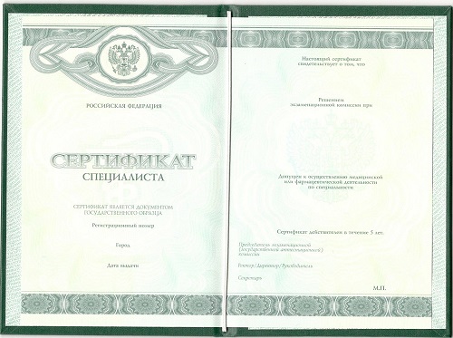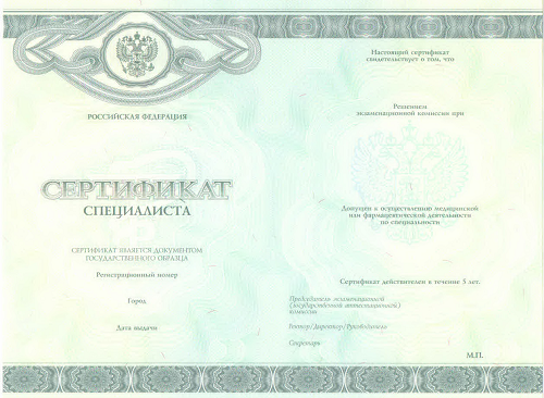 Медицинский сертификат специалиста